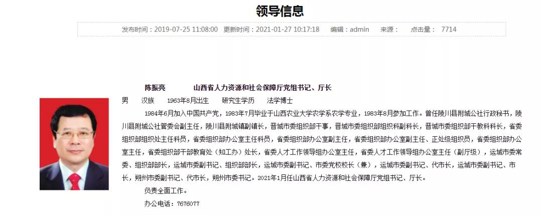 1月26日,省人社厅召开干部大会,宣布省委、省人大常委会关于省人社厅主要领导同志调整的决定:陈振亮同志任省人社厅党组书记、厅长。