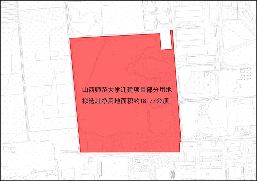山西师范大学迁建项目部分用地拟选址于小店区东部、太榆路以西,山西大学商务学院以北、山西交通职业技术学院以南。本次拟选址地块净用地面积约18.77公顷。