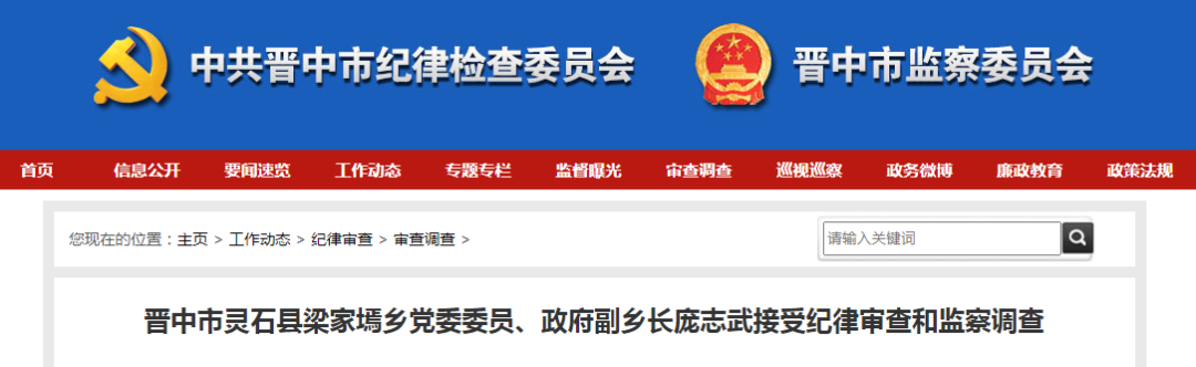 晋中市灵石县梁家墕乡党委委员、政府副乡长庞志武涉嫌严重违纪违法,目前正接受灵石县纪委监委纪律审查和监察调查。