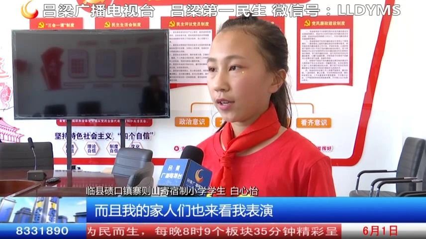 临县碛口镇寨则山寄宿制小学 学生 白心怡:我今天特别的开心,而且我的家人们也来看我表演,我感到特别的兴奋。