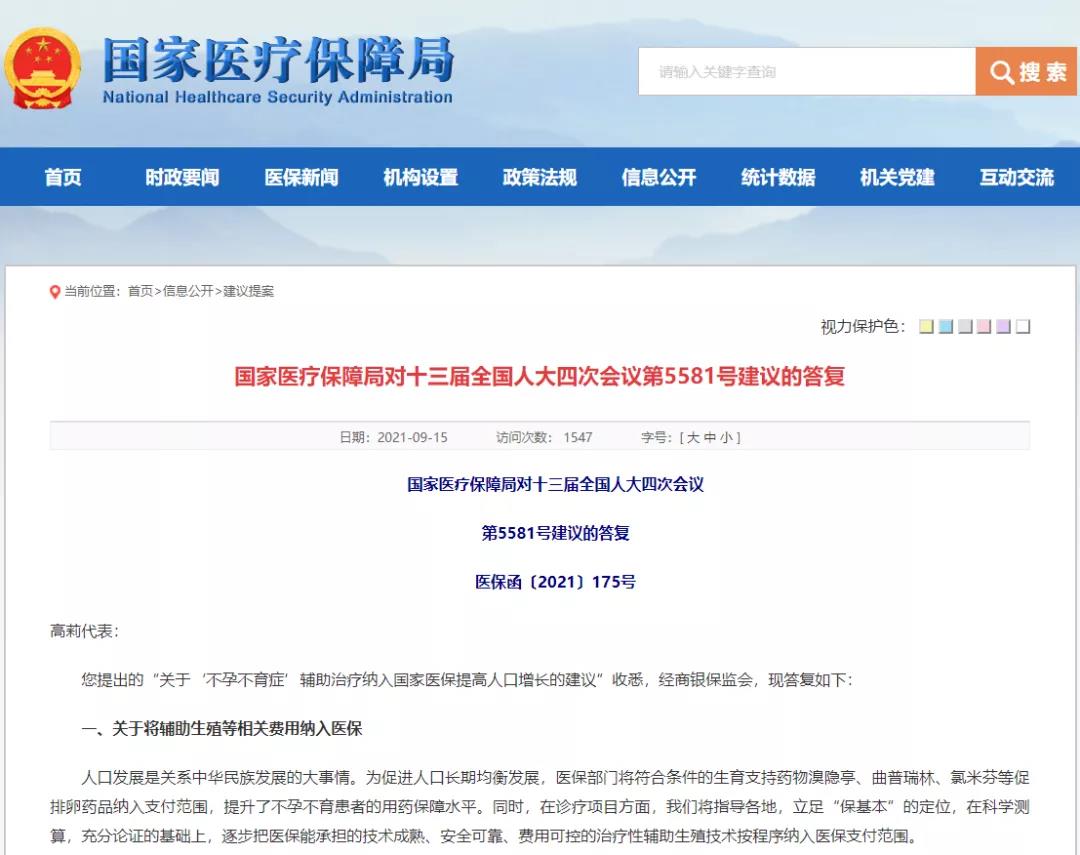 日前,国家医疗保障局在官网发布《对十三届全国人大四次会议第5581号建议的答复》。针对全国人大代表提出“关于不孕不育症辅助治疗纳入国家医保提高人口增长的建议”,国家医疗保障局答复称,为促进人口长期均衡发展,医保部门将符合条件的生育支持药物溴隐亭、曲普瑞林、氯米芬等促排卵药品纳入支付范围,提升了不孕不育患者的用药保障水平。同时,在诊疗项目方面,将指导各地,立足“保基本”的定位,在科学测算、充分论证的基础上,逐步把医保能承担的技术成熟、安全可靠、费用可控的治疗性辅助生殖技术按程序纳入医保支付范围。