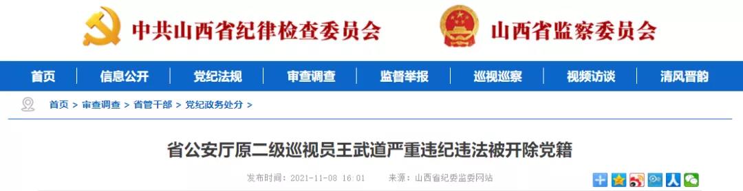 日前,经省委批准,省纪委监委对省公安厅原二级巡视员王武道严重违纪违法问题进行了立案审查调查。
