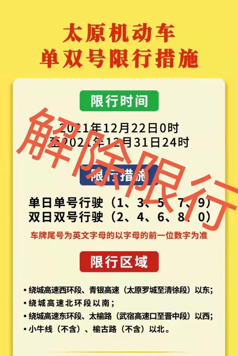 接市改善省城环境质量领导小组办公室通知,根据12月26日省、市两级最新会商研判结果,12月27日至12月31日,我市气象条件转好,污染物易于扩散。为方便广大市民出行,决定自12月27日0时起,解除12月22日0时至12月31日24时的市区范围内机动车单双号限行交通管制措施。届时,滨河东路、滨河西路部分路段高峰期限行调控措施恢复执行。