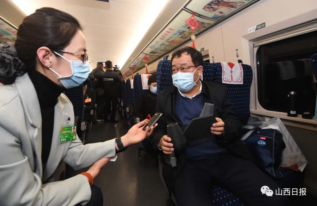 吕春祥代表在列车上接受山西日报记者采访。山西日报记者李联军摄