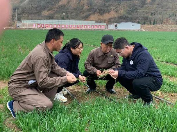 山西农业大学博士生和农业企业工作人员查看苗情。新华社记者 魏飚 摄