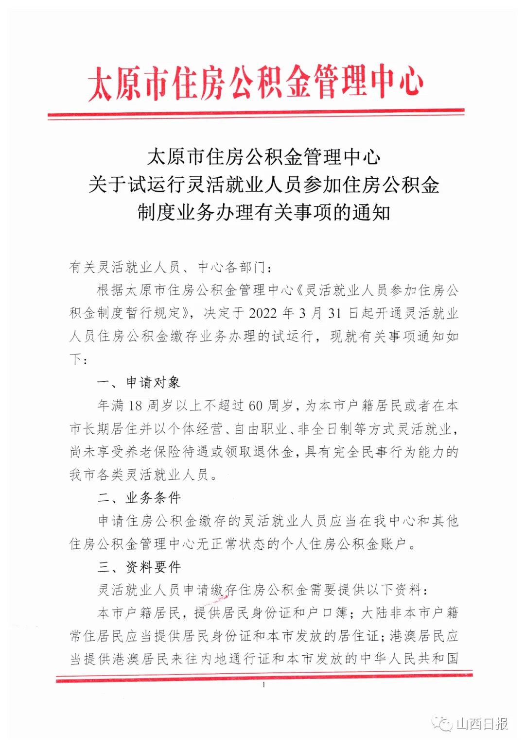 3月31日起,太原市灵活就业人员也可缴存住房公积金,与单位缴存职工享受同等待遇