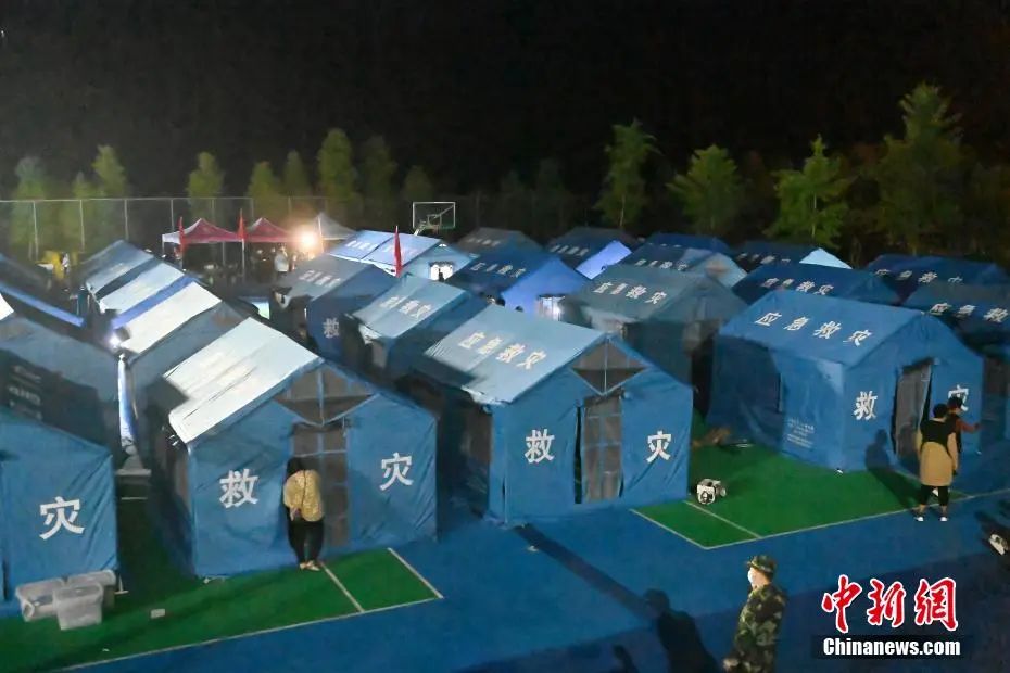 在太平镇,共设有7处临时安置点,其中太平中学安置点规模最大。该安置点搭设的60余顶帐将容纳约500人,主要为太平中学学生、周边房屋受损或居住在易发生次生灾害区域的村民。