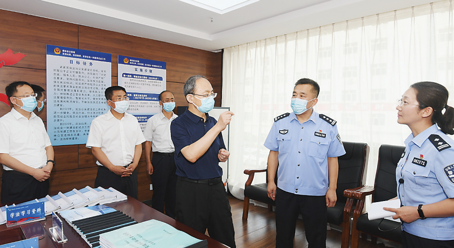 郑连生先后深入吕梁市公安局离石分局、柳林县庄上镇政府、县综治中心、柳林镇老董说事室、县公安局等地,详细了解乡镇综合行政执法改革、综治中心规范化建设、矛盾纠纷多元化解、“情指勤舆”一体化建设等方面情况,与一线工作人员深入交流加强基层社会治理工作。