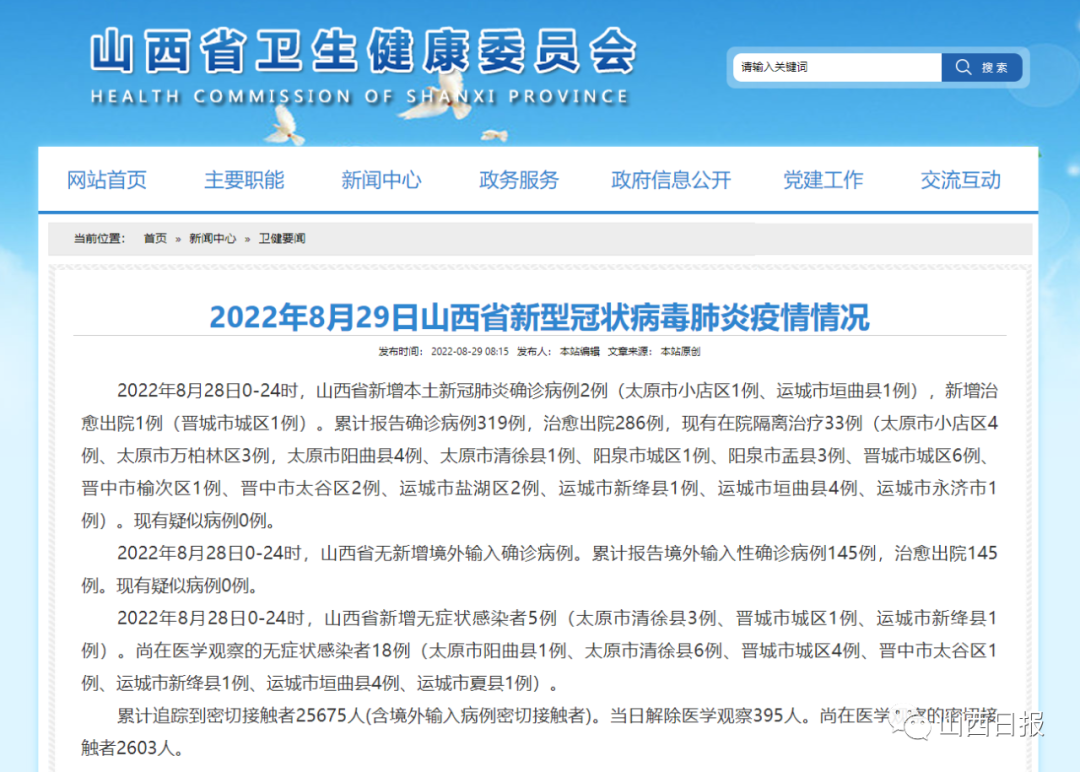 8月28日,山西省新增本土确诊病例2例,新增无症状感染者5例
